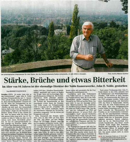 Nach seiner Freilassung lebte John H. Noble wieder in den USA, arbeitete dort als Politikberater und Wissenschaftler. 1990 kehrte er nach Dresden zurück. Die Kamerawerke des Vaters waren 1945 enteignet worden. Noble stellte einen Restitutionsantrag und übernahm 1991 das Werk in Niedersedlitz. Bereits 1994 kam die erste Noblex-Kamera auf den Markt. Aber eine Erfolgsgeschichte wurde Nobles Neuanfang nicht. Die Treuhand verkaufte die Warenzeichen der Praktika an ein westdeutsches Unternehmen, für den amerikanischen Unternehmer hätten sie hilfreich sein können. 1998 musste er den in finanzielle Schwierigkeiten geratenen Betrieb aufgeben. Auch die an ein Märchenschloss erinnernde Familienvilla "San Remo" wurde verkauft. Noble klagte über Behörden, Banken und Angestellte, die ihn belogen und betrogen hätten. Er kämpfte lange dafür, was er für sein Recht hielt. Aufgeben, das passte einfach nicht zu einem Mann wie ihm.